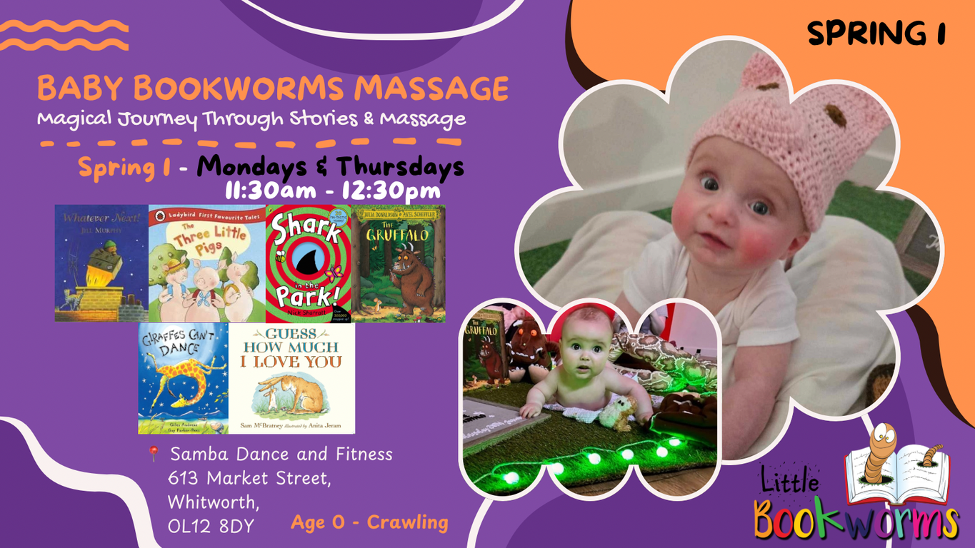 Led by a qualified teacher and infant massage instructor, Baby Bookworms blends the soothing art of baby massage with interactive storytelling, songs, and British Sign Language. It’s a magical introduction to language, bonding, and sensory play — all in one relaxed, friendly session.