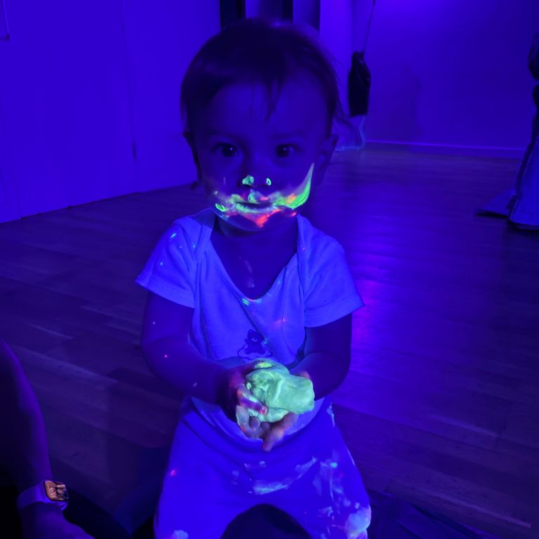 A magical, messy, glow-in-the-dark experience where children can splash, squish, and explore glowing neon fun under UV lights!